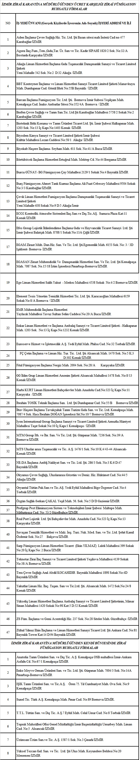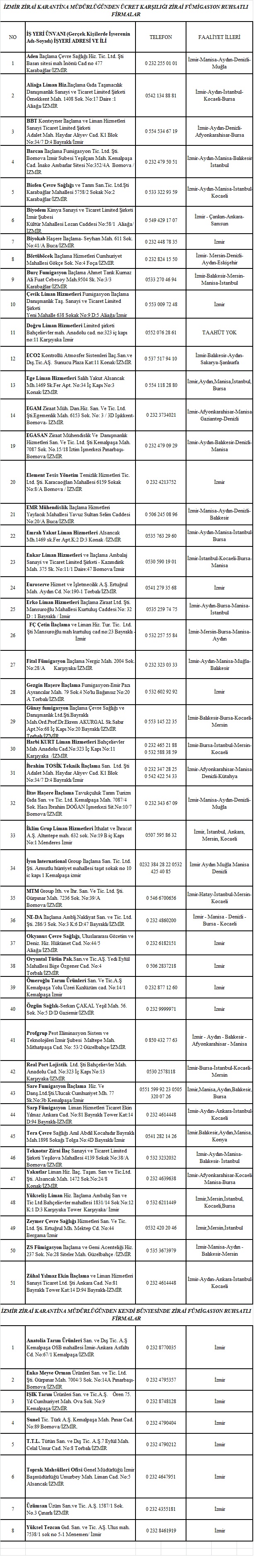 FÜMİGASYON FİRMALARI